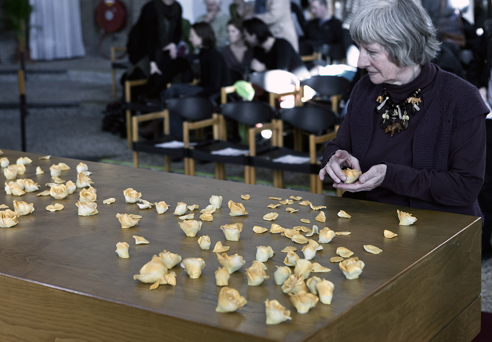 After the performance the public was offered the golden marzipan roses that lay on the altar.