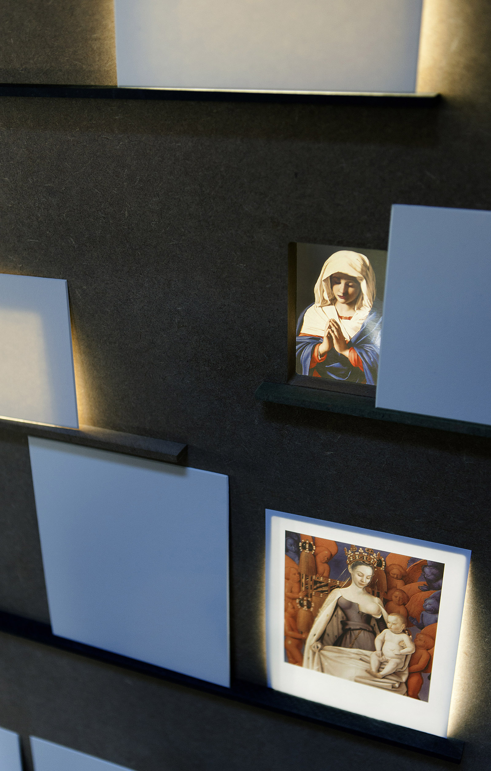 With this installation Kraal researches the sensual, romantic, yet also chaste and demure image, which exists of the Virgin Mary. In painting as well as in cinema, Maria is often pictured as a lascivious young mother yet also as a suffering, tormented woman.