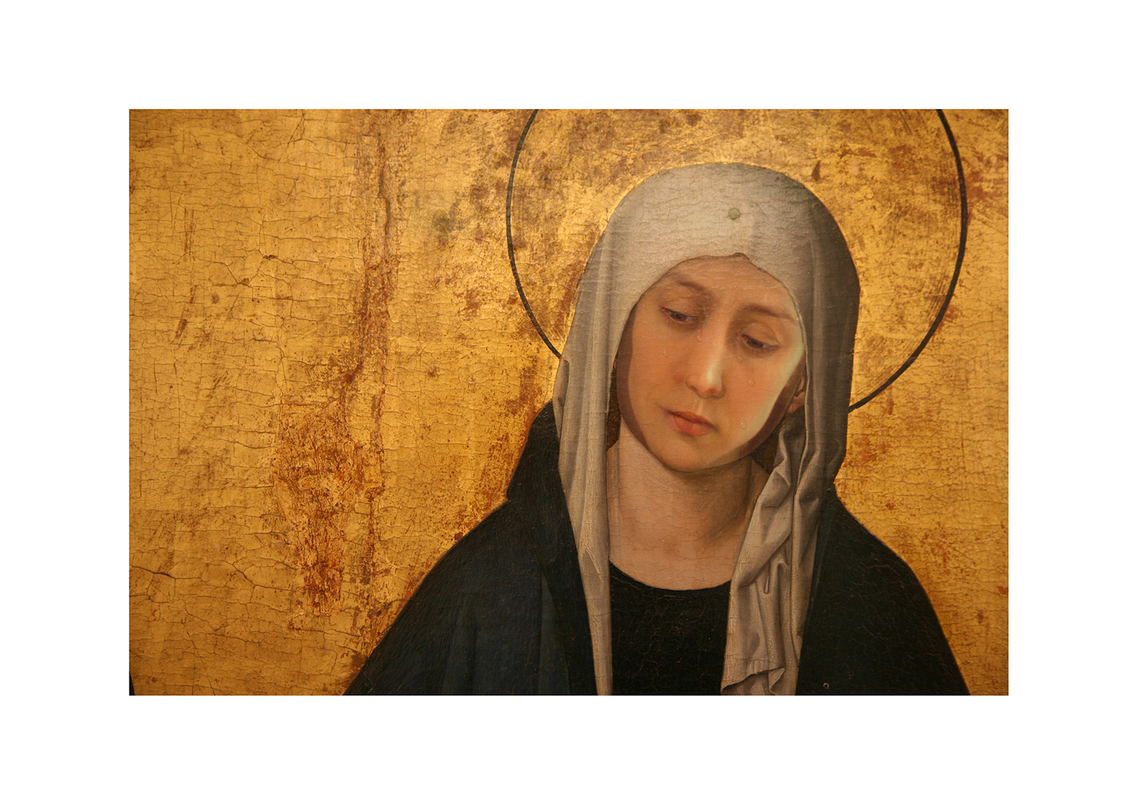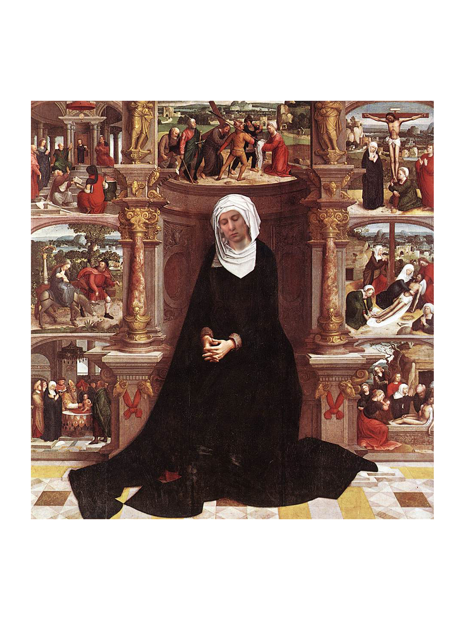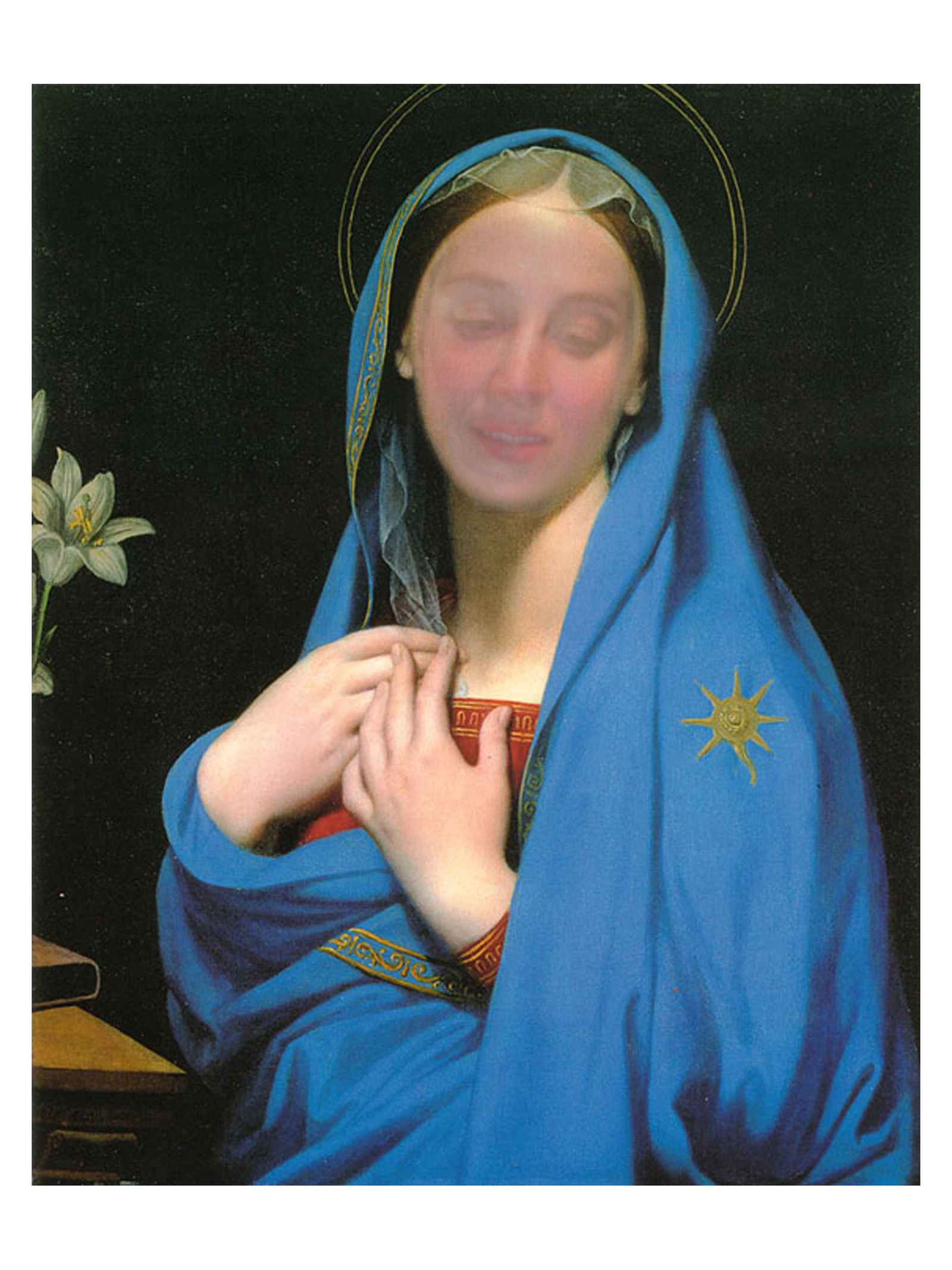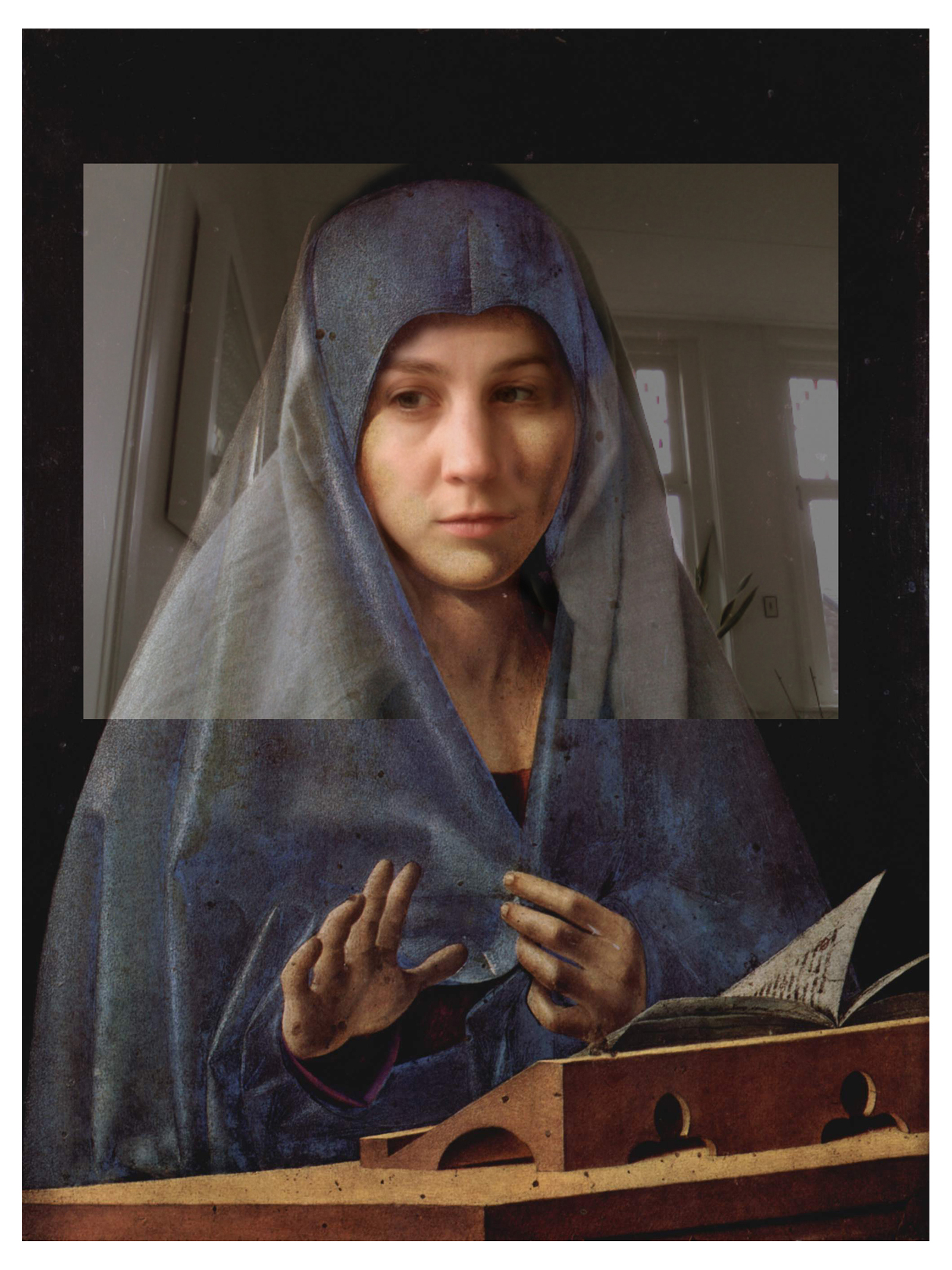 “The first idea I had to identify with the suffering of Maria and the weeping women, to experience unconditional love for Jesus, was to spend Lent as a nun in a convent. It was also a way to torment myself. I am not religious. The weeping women undergo and accept the situation just as Maria seems to do. They suffer in a very pure form. Even though Jesus Christ is not their own child, they love him unconditionally. The chaste life of a nun is to me also about acceptance, about patience and suffering and of course about that very unconditional love. The nun I could imagine to be though was a nun covered in a layer of icing sugar; living in a beautiful medieval abbey where the nuns would sing, work in the flower garden, bake their own bread. Those kinds of cloisters, those kinds of nuns I know mostly from movies. Maria emits a similar attractiveness. In painting as well as in cinema. Making use of music, photographs, paintings, movie stills and collages, I intend to become Maria.” DK