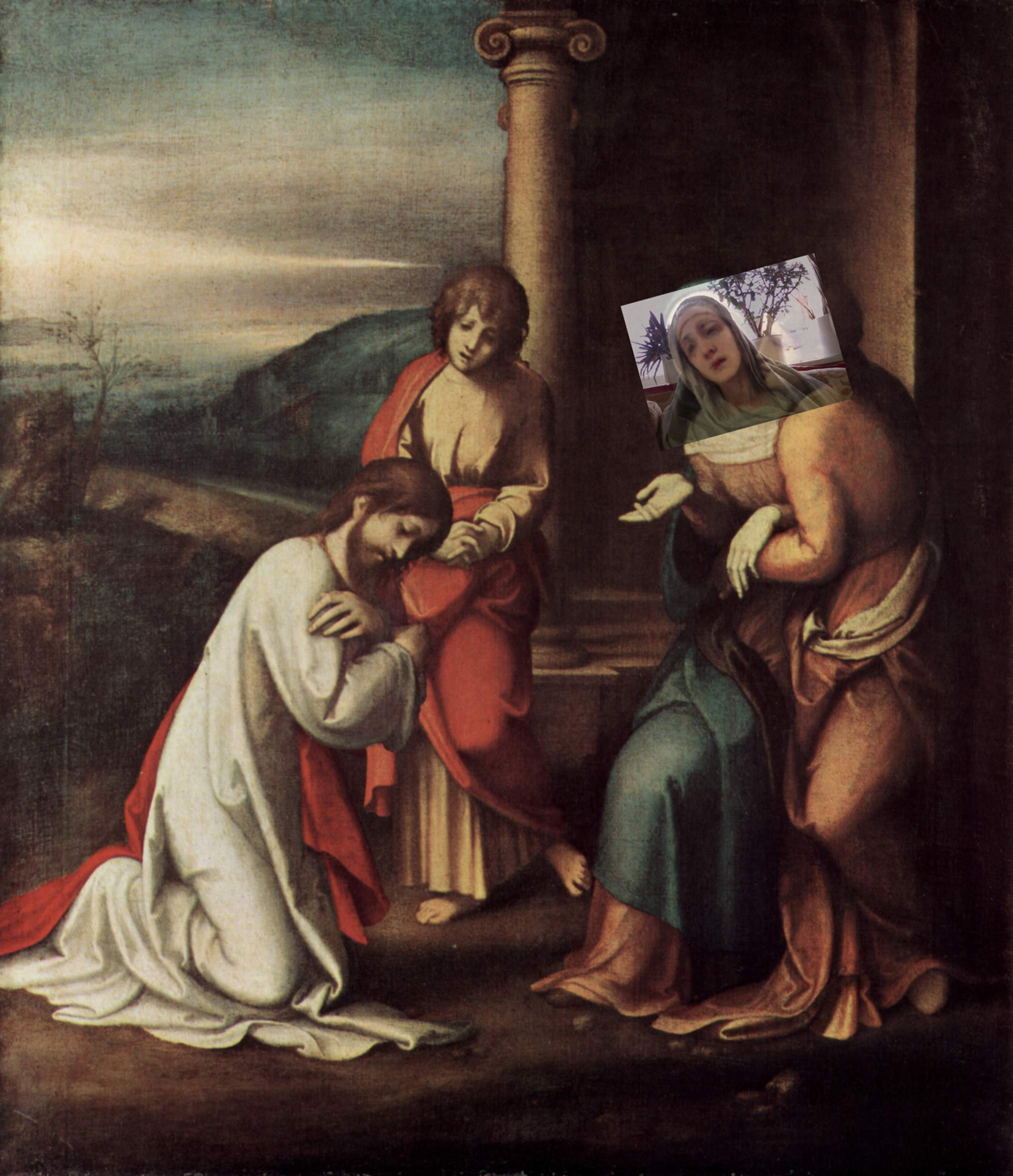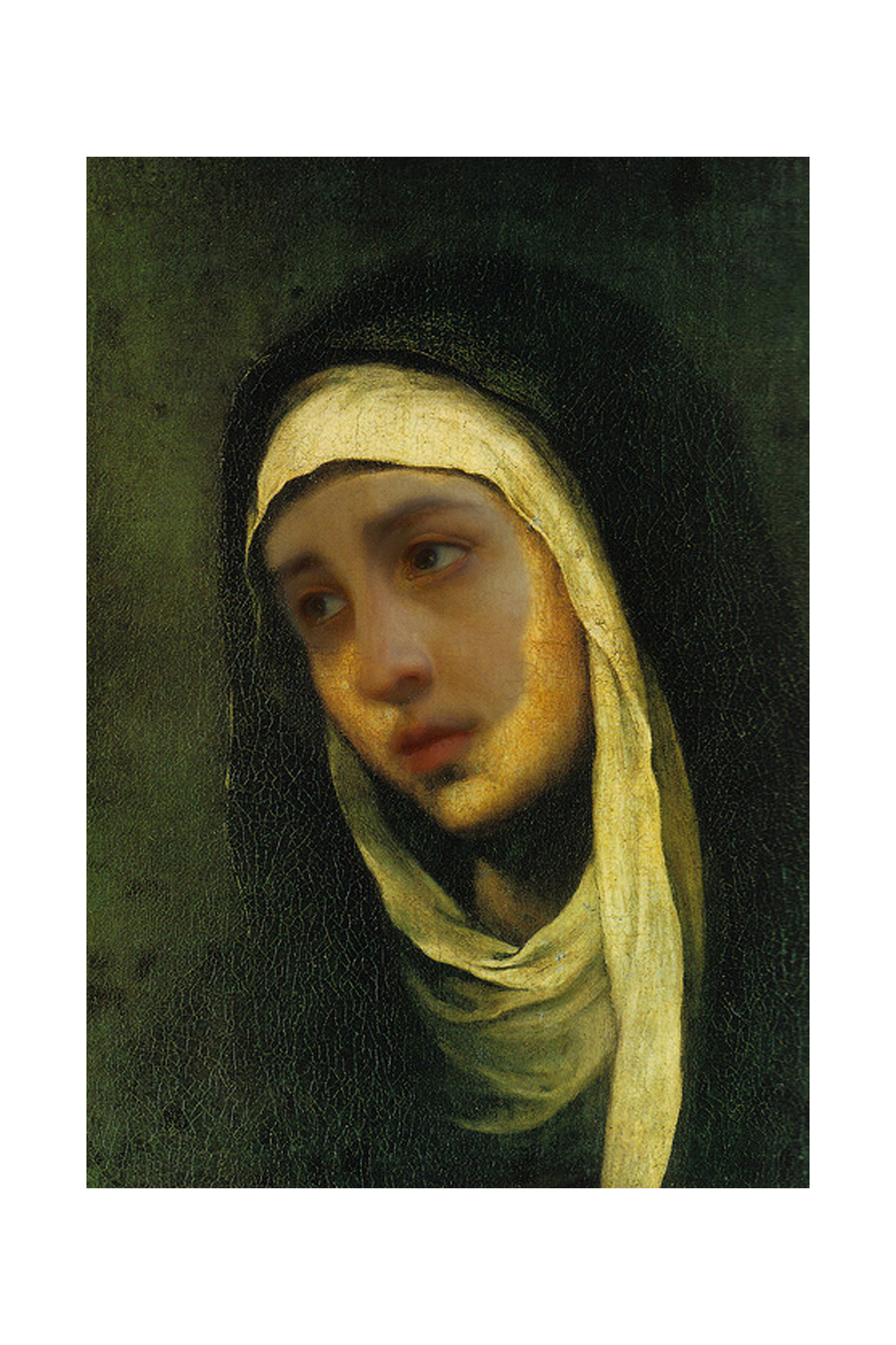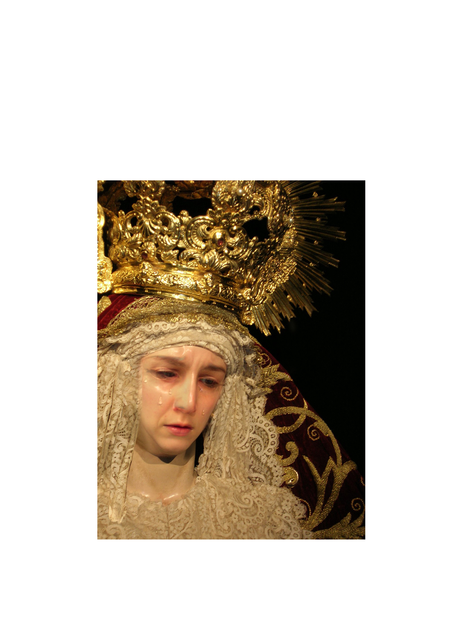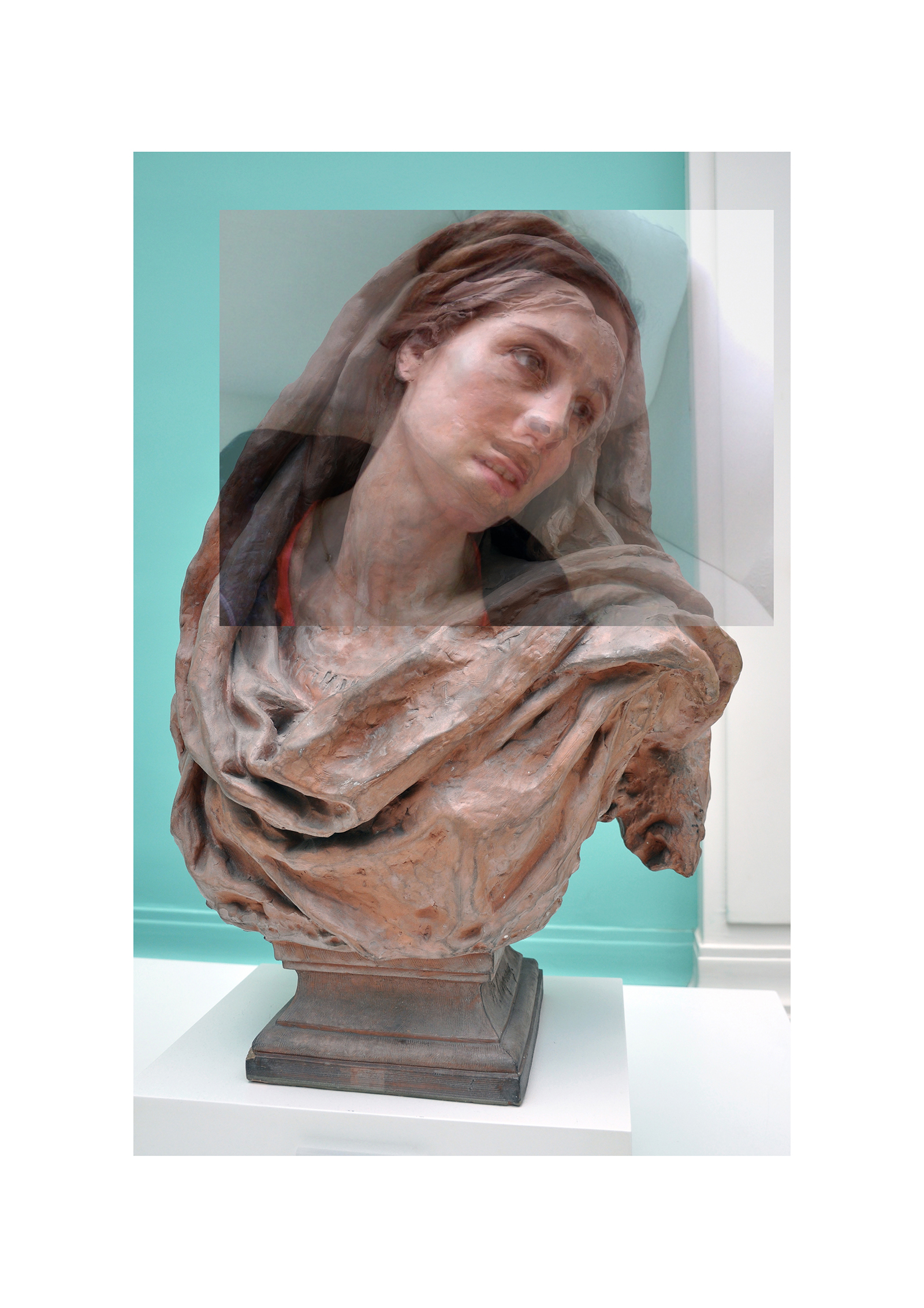 “The first idea I had to identify with the suffering of Maria and the weeping women, to experience unconditional love for Jesus, was to spend Lent as a nun in a convent. It was also a way to torment myself. I am not religious. The weeping women undergo and accept the situation just as Maria seems to do. They suffer in a very pure form. Even though Jesus Christ is not their own child, they love him unconditionally. The chaste life of a nun is to me also about acceptance, about patience and suffering and of course about that very unconditional love. The nun I could imagine to be though was a nun covered in a layer of icing sugar; living in a beautiful medieval abbey where the nuns would sing, work in the flower garden, bake their own bread. Those kinds of cloisters, those kinds of nuns I know mostly from movies. Maria emits a similar attractiveness. In painting as well as in cinema. Making use of music, photographs, paintings, movie stills and collages, I intend to become Maria.” DK