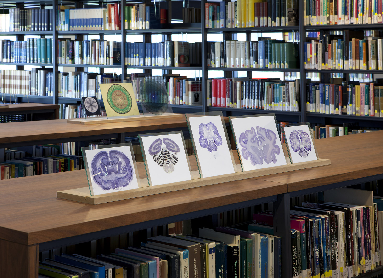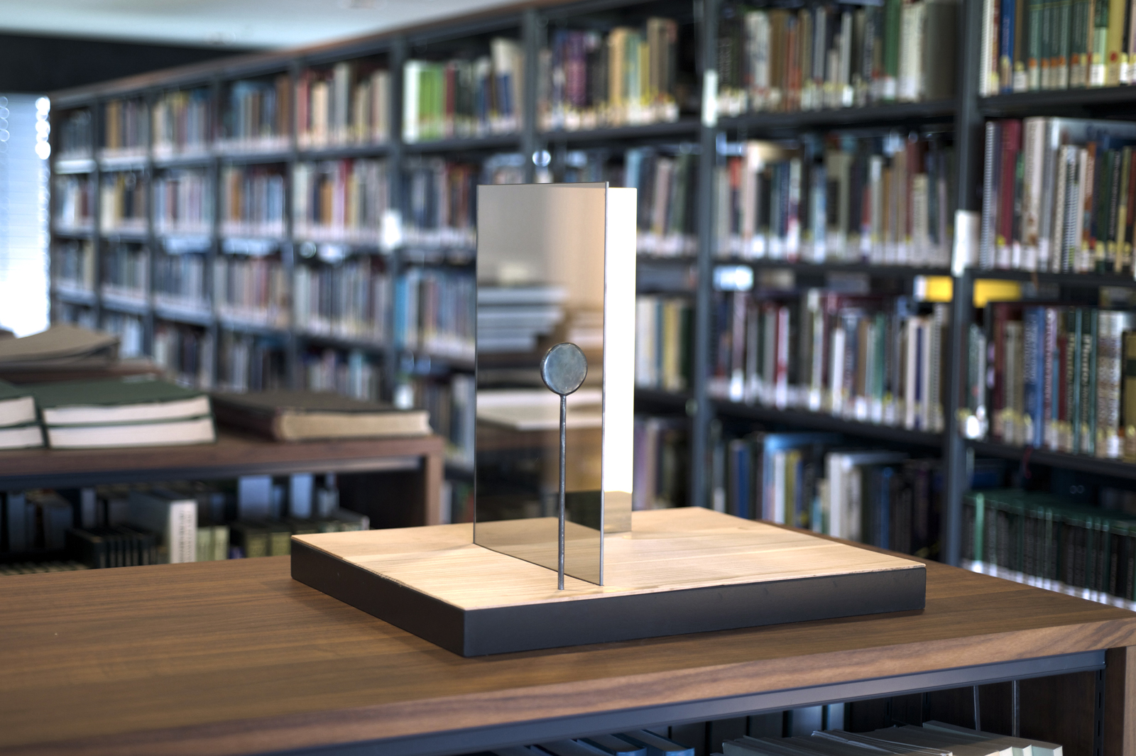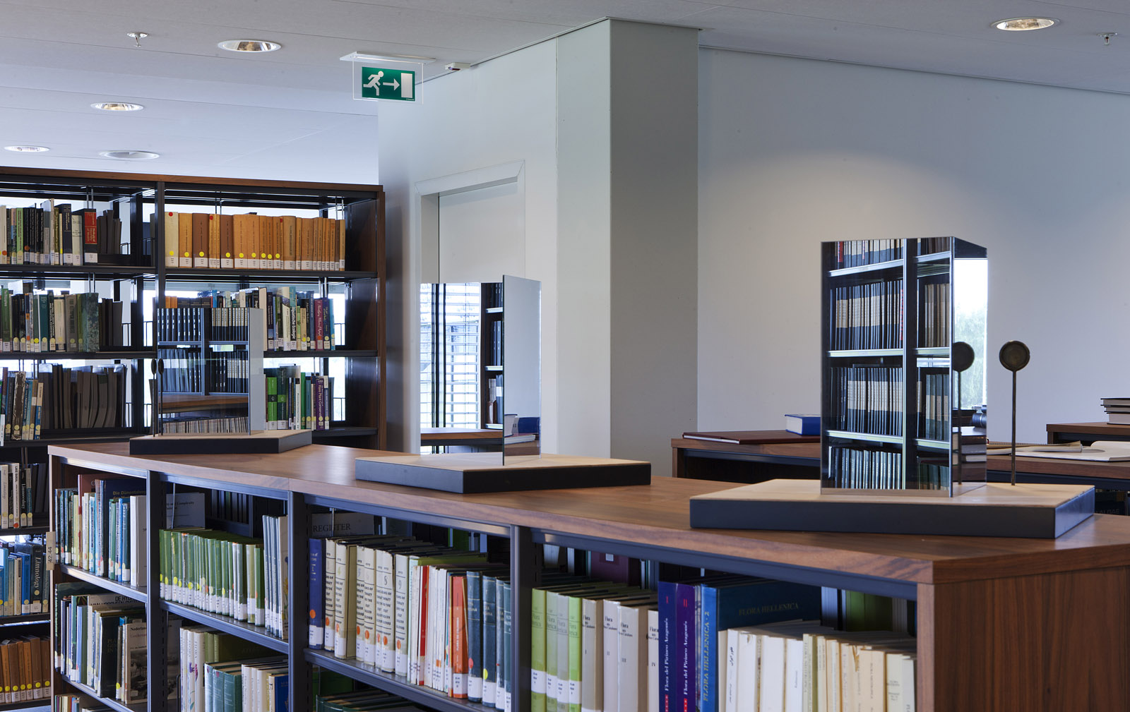 5.University of Amsterdam, faculty of science, library, Amsterdam Science Park. Mirror objects, photographs and book displays (made by Doina Kraal)