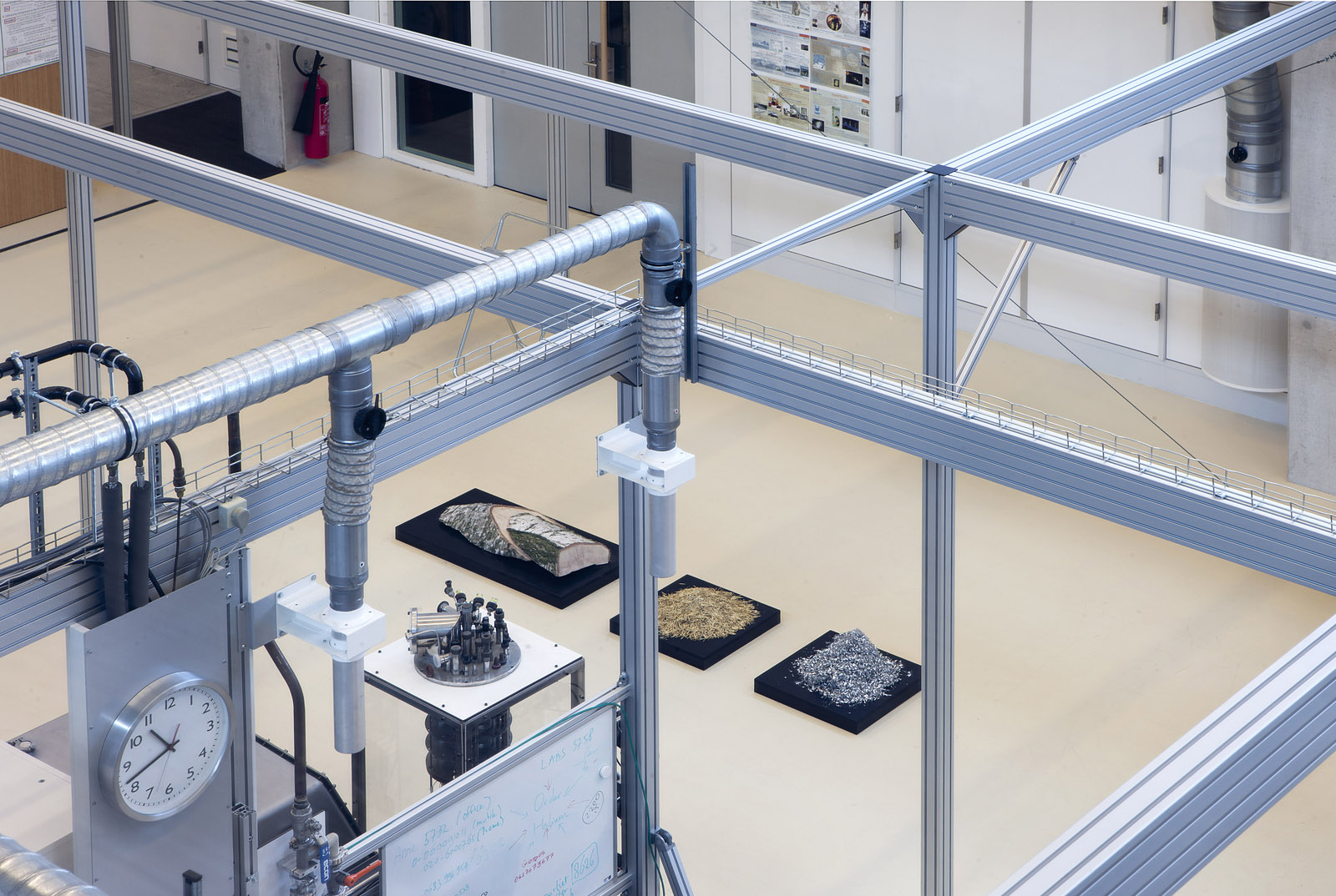 We are about to reach the end of this audio tour. Almost at the end of the corridor, where the windows on the right side are no longer covered with foil, you can look into the laboratory on the left.