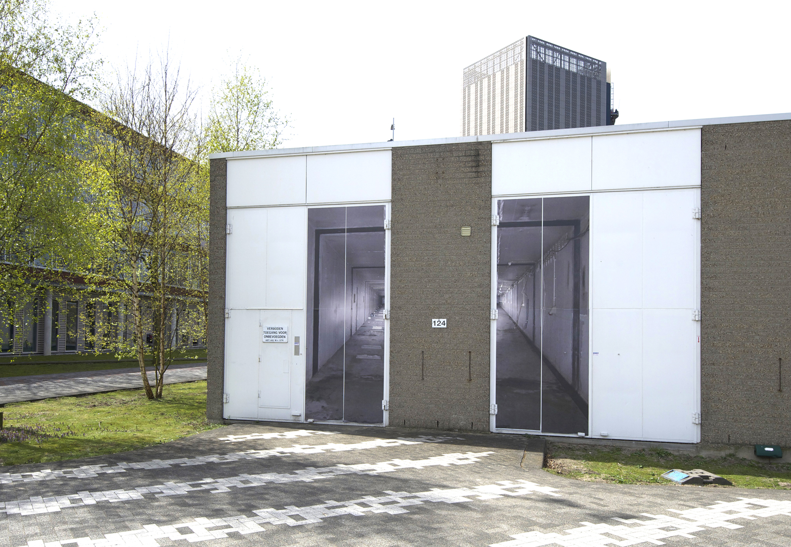 At number 2, you will be looking into a 100-meter-long corridor, which actually lies a couple of meters below the ground. It is what is left of a search for the invisible. I would have loved to walk into it together with you, as it is a somehow strangely magical place to visit, but this was impossible since the current function of this building is a data center and the security is very strict. The pink building on your map is the old accelerator and now data center, the shiny building on top of it, is the new data center. Inside this old structure are thousands of hard drives, computers and air conditioners zooming, keeping the temperatures stable.