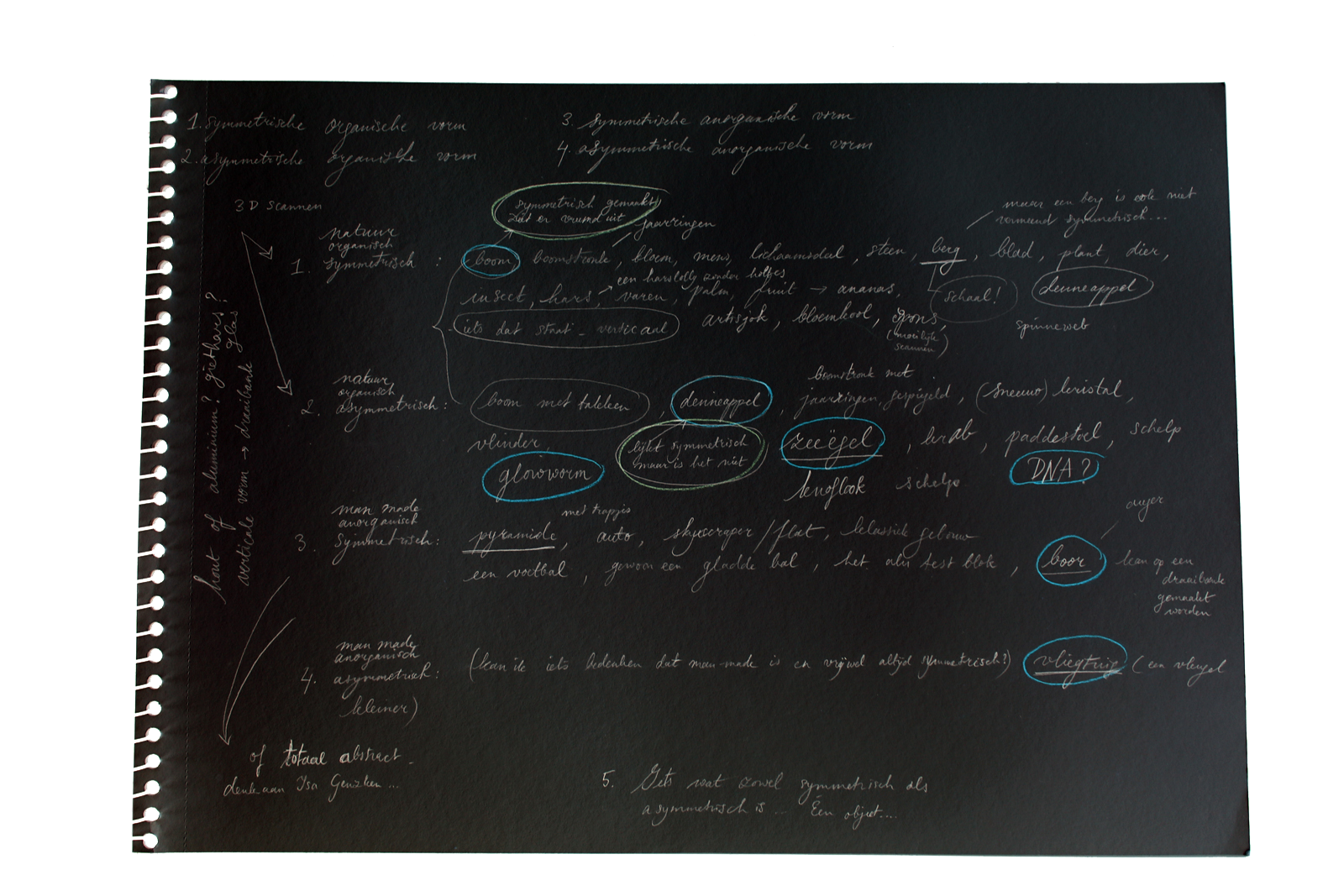 With one of the scientists who work here, Anne de Visser I also had a chat about symmetry. He works amongst other things with crystals and crystals are always symmetrical. He explained me how different materials and shapes can have different levels of symmetry. For example, water versus ice. Water has little symmetry and ice is more symmetrical, we all know what ice and snow crystals look like. In the ice, the molecules are caught in a grid. They can only move within the directions dictated by the grid. In water the molecules can move in any direction and the molecules have more possibilities and might actually end up being more symmetrical! Water is more creative. And isn’t it something that life itself needs water? It needs to be able to move in all possible directions. Wouldn’t it be so boring and moreover very cold if we would live in a frozen world, where our movements are dictated by a grid? Beautiful? Yes, very beautiful, those ice crystals and snowy mountains. We cannot live without them. We need order as much as we need chaos. We need scientists and we need artists, we need symmetry as much as we need asymmetry.