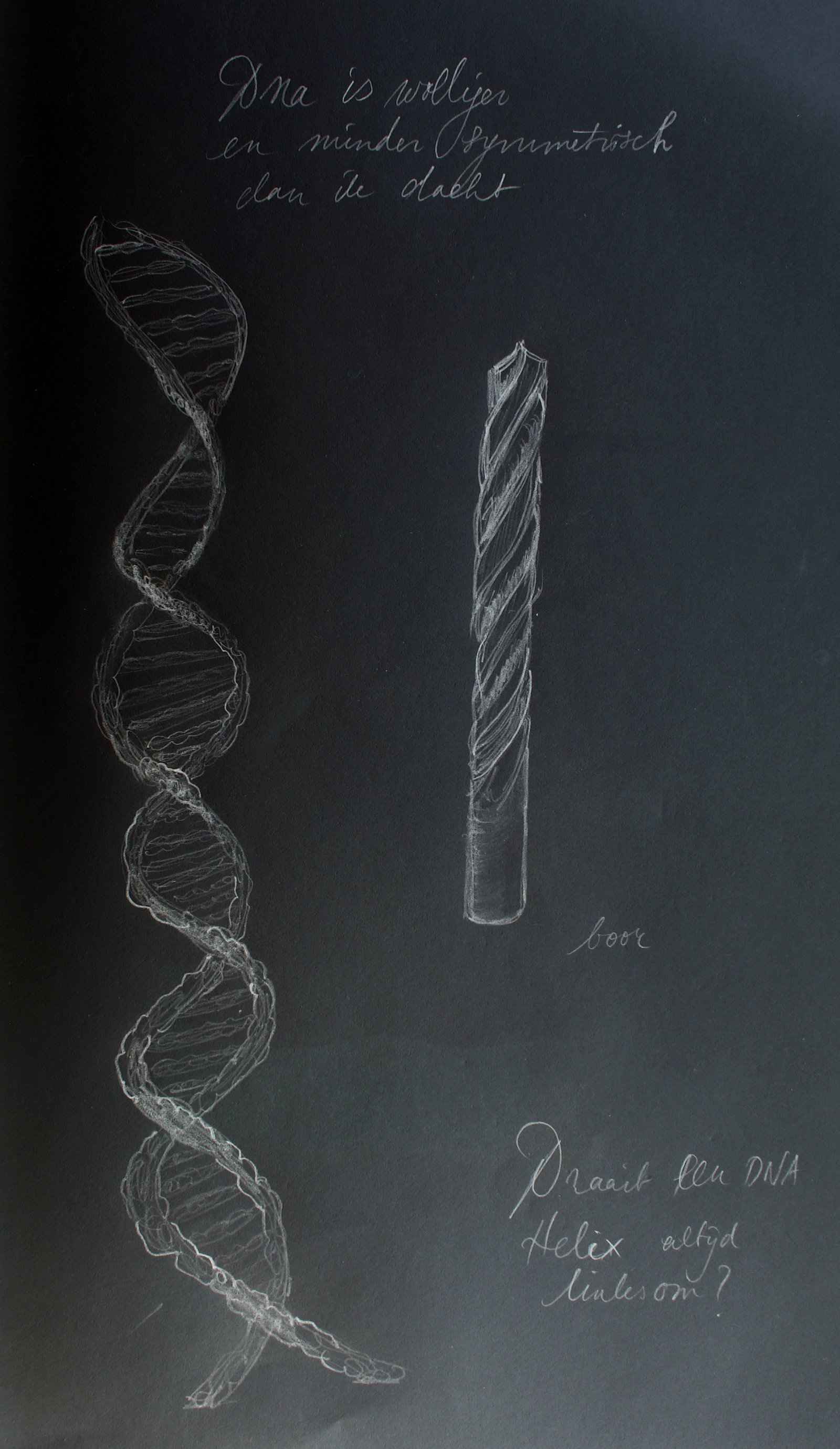 Life chooses a very specific shape for the molecules to make up stuff. If you look at all the proteins in living things, they are always left-handed. If you take for example the atoms, which build caraway seeds (a spice used in rye bread – rogge brood in dutch) – take a mirror image of them and suddenly you get something which tastes of spearmint. Scientists all the time manufacture mirror molecules of all kinds of things (sometimes with disastrous consequences.) Isn’t this incredibly fascinating? Does this relate at all to the big matter – antimatter mystery?